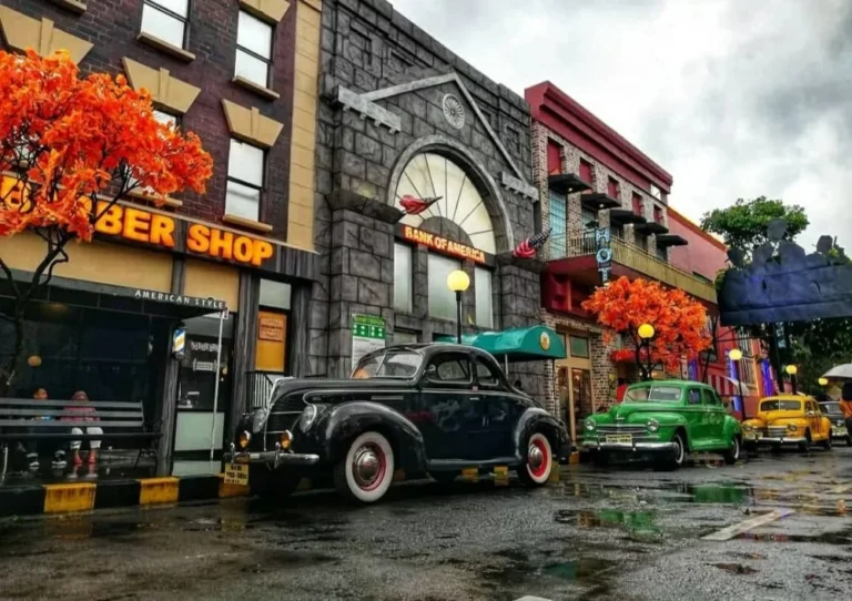 Nah, yang bikin Museum Angkut makin menarik adalah cara penyajiannya yang nggak ngebosenin. Setiap zona punya tema khusus, misalnya Zona Eropa yang dihias ala kota-kota tua seperti Paris dan London, lengkap dengan mobil klasik dan suasana jalanan khas sana. Trus ada juga Zona Gangster Town yang bener-bener mirip set film mafia era 1930-an. Di sini, kamu bisa berpose di depan mobil tua sambil pakai kostum ala mafia atau detektif. Seru banget, kan?